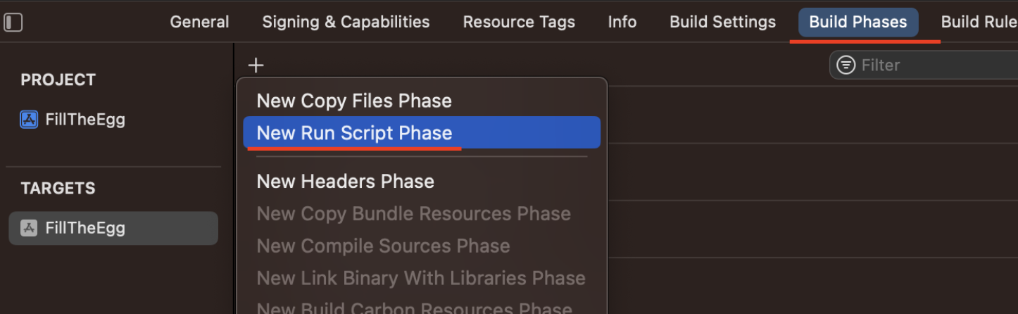 - 또는 Build Phase - Run Script에서 다음과 같이 작성하여 빌드하면 파일이 생성되는 걸 확인할 수 있다.