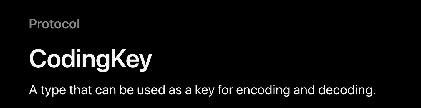 CodingKey는 프로토콜이며, “인코딩 및 디코딩을 위한 키로 사용할 수 있다”고 나와있습니다.