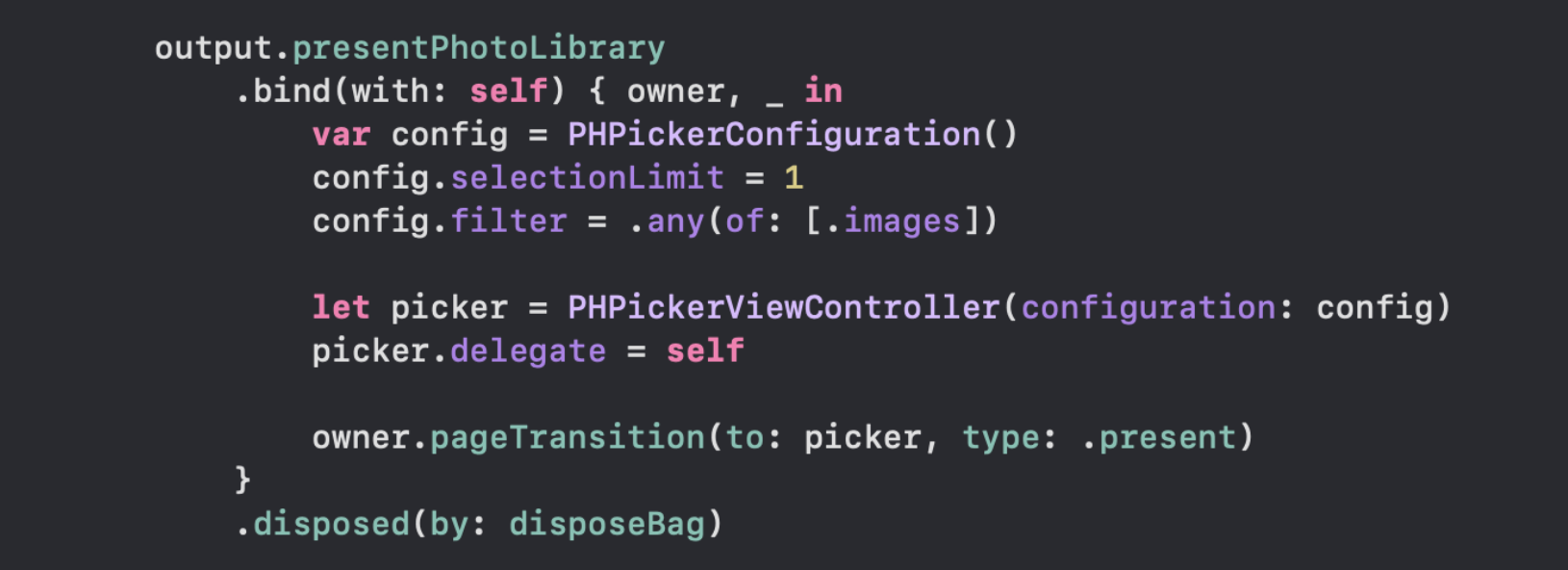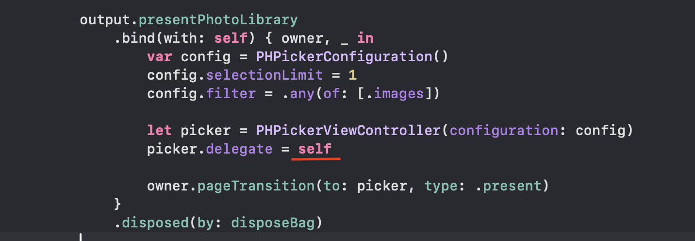 onNext ํด๋ก์ ์์ ์ฐ๋ฆฌ๊ฐ ์ง์ ํด ์ค owner ๊ฐ์ ํ๋ผ๋ฏธํฐ ์ด๋ฆ์ผ๋ก ์ฌ์ฉํด ์ฃผ์ด์ผ ๋น๋ก์ retain๋์ง ์์ผ๋ฉฐ ์ฌ์ฉํ ์ ์๋ ๊ฒ์ ๋๋ค.