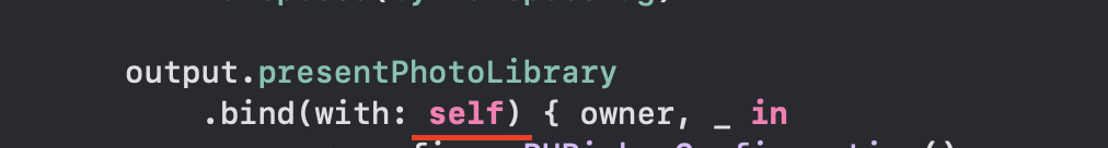 onNext ํด๋ก์ ์ ํ๋ผ๋ฏธํฐ ์ด๋ฆ์ผ๋ก owner ๊ฐ ์๋๋ฐ ํด๋ก์ ๋ด๋ถ์ self…๋ ์ฌ์ฉ๋๊ณ ์๋ค์?